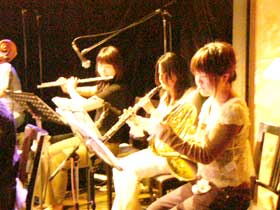 と言うわけで新しいお友だちをご紹介。フルートは梶川真歩、22歳。ライブ前日のリハーサル、3月24日は東京芸大の卒業式で、卒業式コスプレ(笑)で登場してくれた。彼女のフルートは明るく優しい音色だ。 |