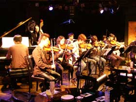 青柳誠トライフレームwithプチ・オーケストラ、このアルバムをリリースしたのは2004年春、しかしこの編成でのライブはアルバムリリース後初めてだった。プチオケのメンバーは、リリース後東京を離れたりとか諸処の事情により参加できないメンバーもいたので、若干メンバーは入れ替わった。 |