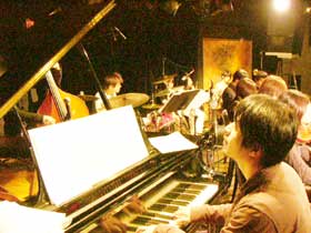 ラプソディー・イン・ブルーをこの編成用にアレンジした。あらためて長い曲だぁ〜。では、リハーサル&ライブ本番のスナップをど〜ぞ。 |